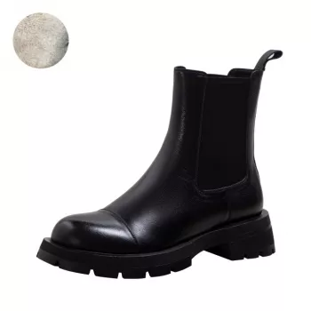 Women's Leather Winter Chelsea Ankle Boots with Thick Heel and Round Toe