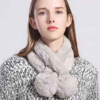 Women's Winter Real Rex Rabbit Fur Scarf with Pom Pom
